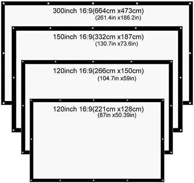 100 inch 16:9 Folding Projection Screen provide about 2200 * 1250 mm viewing area,Our screen surface provides an exceptionally wide viewing angle at 160 degrees with no resolution loss at any viewing angle.