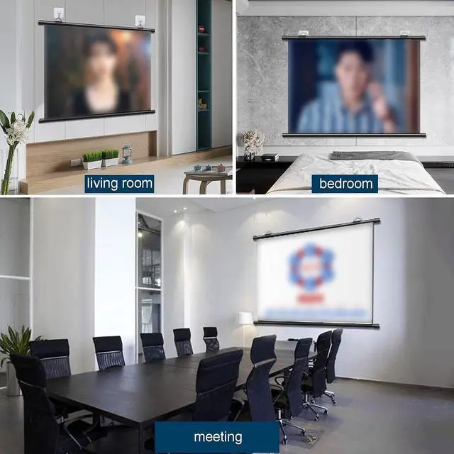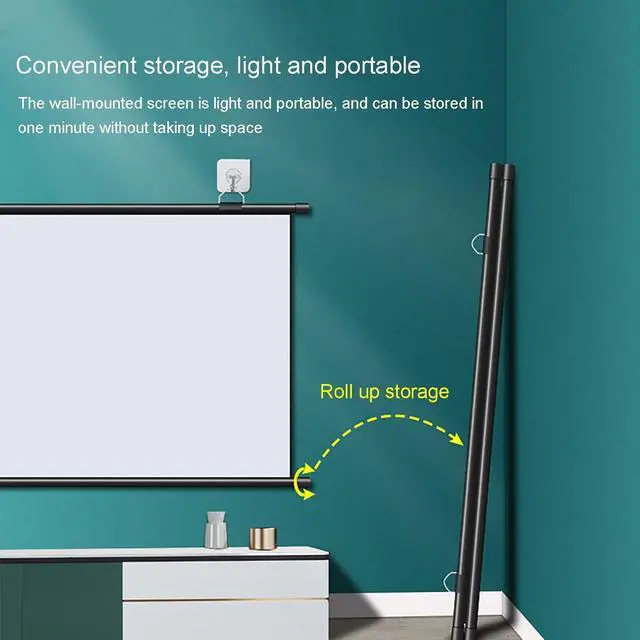 The portable projector screen can be rolled up and will not take up extra space after storage. The top hook design allows for free movement and can be easily hung in any situation.
