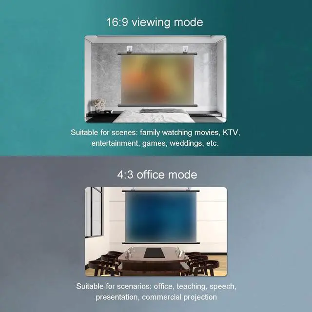 With 4:3/16:9 screen format, the projection screen provides a wide viewing area, bringing you excellent visual enjoyment, perfect for cinema movies, conferences, schools and outdoors.