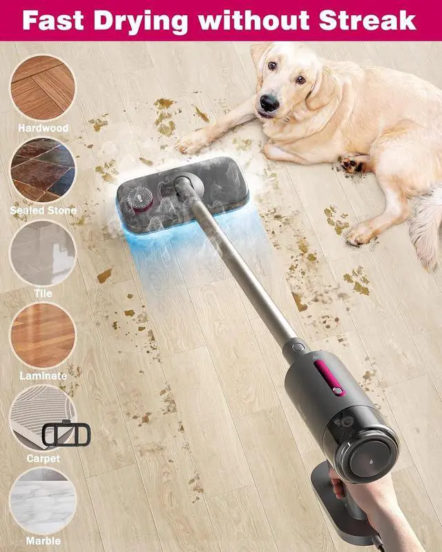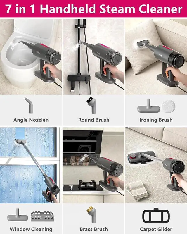 Steam Mop for Floor Cleaning, 7In1 Handheld Steamer Cleaner Detachable for Hardwood Laminate,Vinyl,Carpet,Tile,Grout,All Floors, Multi Purpose for Home,1500W 230 23Ft Cord,Front Sprayer,Store Station