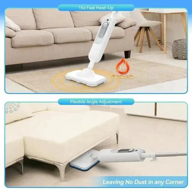 3. Instant Steam in 15 Seconds & Dual Steam Modes: Low (22g/min) for daily shine, high (30g/min) for deep cleaning adjustable via the ergonomic handle for precise control.