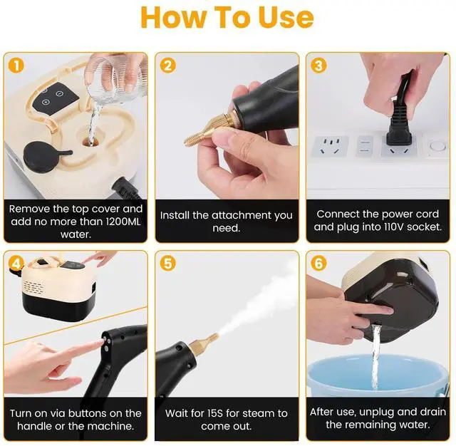 1. To avoid burned,please don't touch the steam hose while working, it's best to wear gloves and ensure that the rubber ring are properly installed to avoid air and water leaks. Always ensure the steamer is on a stable surface during use.
