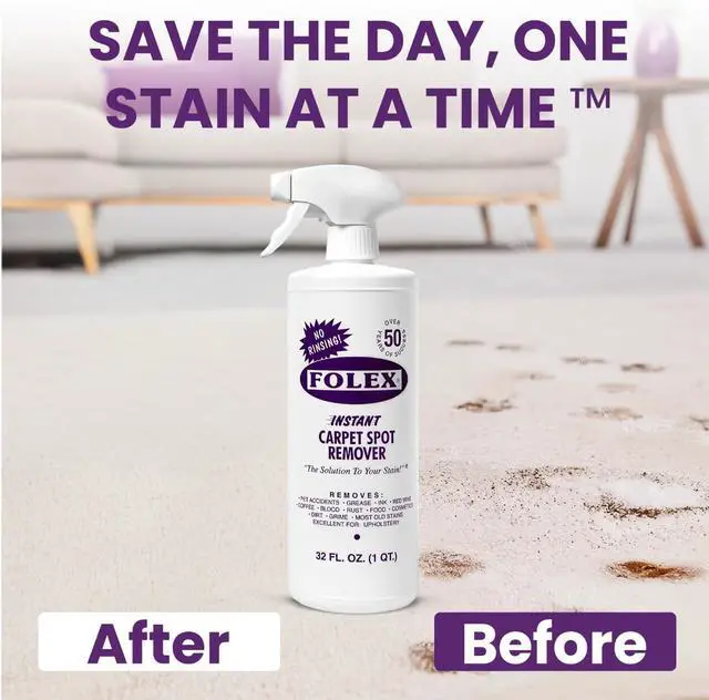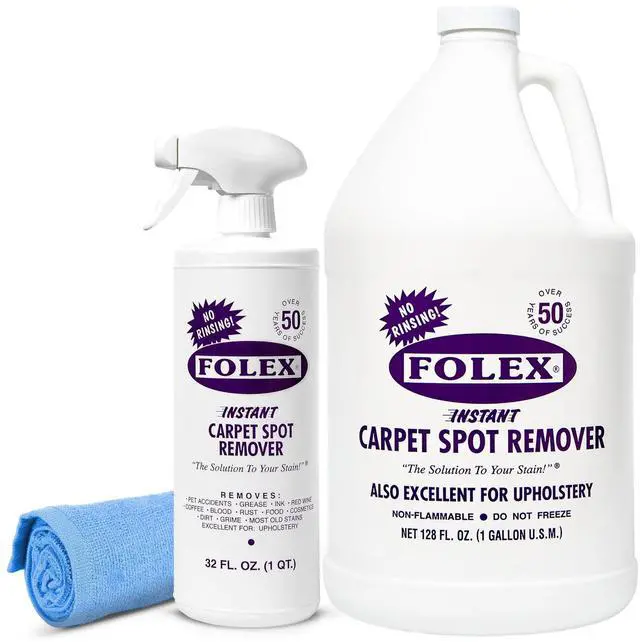 Our formula removes: pet accidents, grease, ink, red wine, coffee, blood, rust, food, cosmetics, dirt, grime, and most old stains. FOLEX Instant Carpet Spot Remover works on upholstery, carpets, and other colorfast materials that can be safely dampened with water. FEATURESINSTANT RESULTS. No rinsing, vacuuming or waiting to see results. Spots vanish before your eyes. Amazing surfactant action instantly removes stubborn grease, dirt and grime. SAFE to use around children and pets if used as directed. WORKS on any colorfast carpets and upholstery that can be safely dampened with water. NON-MAGNETIC, spot will NOT reappear after cleaning. NON-FLAMMABLE, contains no solvents of any kind. ODOR-FREE, no unpleasant chemical smellVOCs, CFC