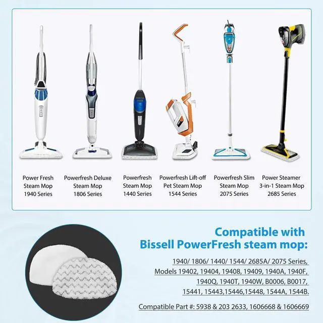 | Fits Models | For Bissell Powerfresh Mop 1940, 19402, 19405, 19408, 19409, 1940A, 1940F, 1940Q, 1940T, 1940W, B0006, 19404, 19401, 1940N, 1806, 15441, 1544, 15443, 15446, 15448, 1544A, 1544B, 2075A, 2685A, 35018, 35019, 3501, 20781, 2078, 20788, 2078A, 2181, 2814. | For Bissell Powerfresh Mop 1940, 19402, 19405, 19408, 19409, 1940A, 1940F, 1940Q, 1940T, 1940W, B0006, 19404, 19401, 1940N, 1806, 15441, 1544, 15443, 15446, 15448, 1544A, 1544B, 2075A, 2685A, 35018, 35019, 3501, 20781, 2078, 20788, 2078A, 2181, 2814. | For Bissell Powerfresh Mop 1940, 19402, 19405, 19408, 19409, 1940A, 1940F, 1940Q, 1940T, 1940W, B0006, 19404, 19401, 1940N, 1806, 15441, 1544, 15443, 15446, 15448, 1544A, 1544B, 2075A, 2685A, 35018, 35019, 3501, 20781, 2078, 20788, 2078A, 2181, 2814. | For Bissell Powerfresh Mop 1940, 19402, 19405, 19408, 19409, 1940A, 1940F, 1940Q, 1940T, 1940W, B0006, 19404, 19401, 1940N, 1806, 15441, 1544, 15443, 15446, 15448, 1544A, 1544B, 2075A, 2685A, 35018, 35019, 3501, 20781, 2078, 20788, 2078A, 2181, 2814. |