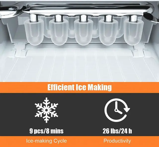 - Makes 26 lbs of ice each day, meeting your daily ice needs