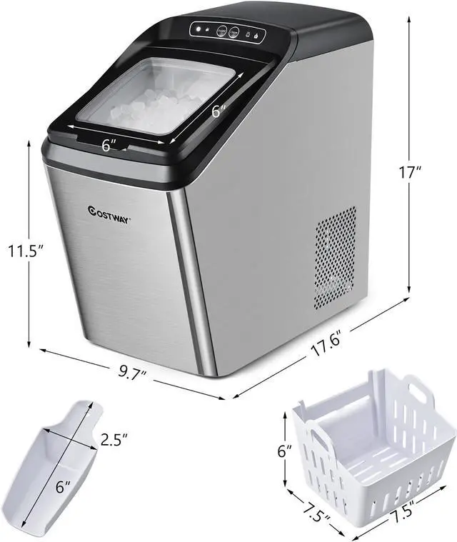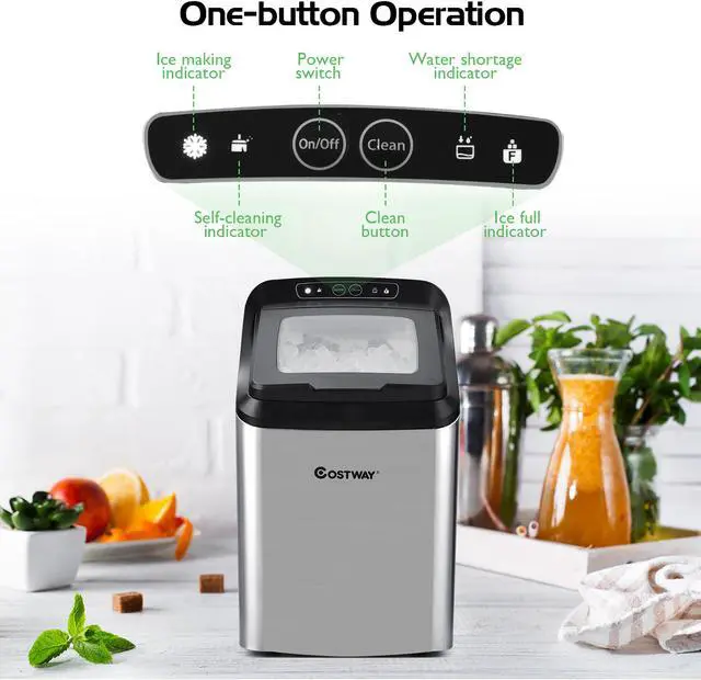 Get your first spoon of ice within 20 mins and you can yield 29 lbs of chewable and soft ice per day. And it has great insulation abilities supported by the 3-layer cover and a premium compressor. There are 2 ways to refill the ice maker---add water into the 2.6 L water tank every time; or link it with the external water sources through the inlet pipe. You can drain out the melting water via outlet pipe, or it will be recycled for the next round of ice making. The control panel is easy to understand and operate with a self-cleaning and defrost function to relieve your burden. This ice maker also has indicators to remind you of the water shortage and full ice conditions. To enjoy the ice at its freshest, please use up ice in the basket or put it in the fridge to avoid melting around.