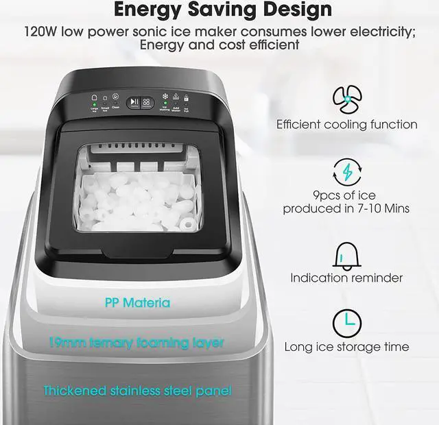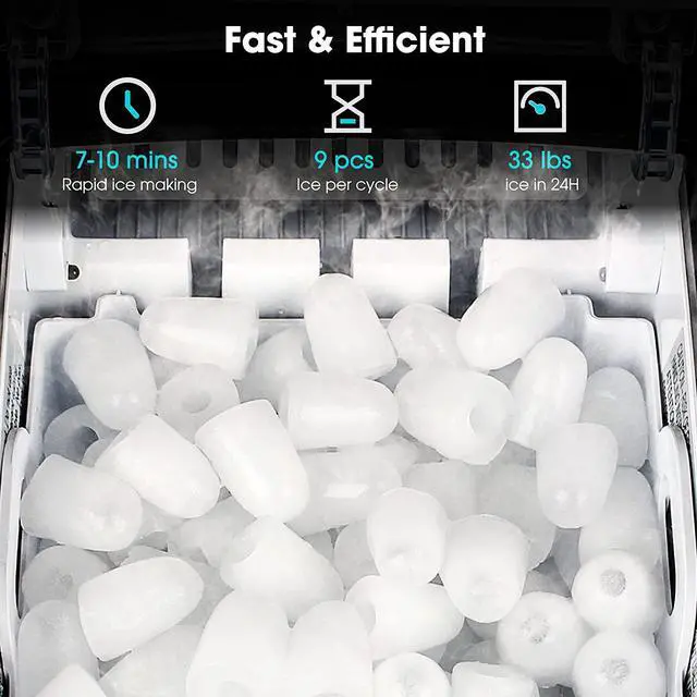 Tasty and Crunchy Ice, Enjoy ice in 7 Minutes, Nice airy texture which you will enjoy chewing. 33 lbs ice daily, Enough to keep drinks cold all day long.