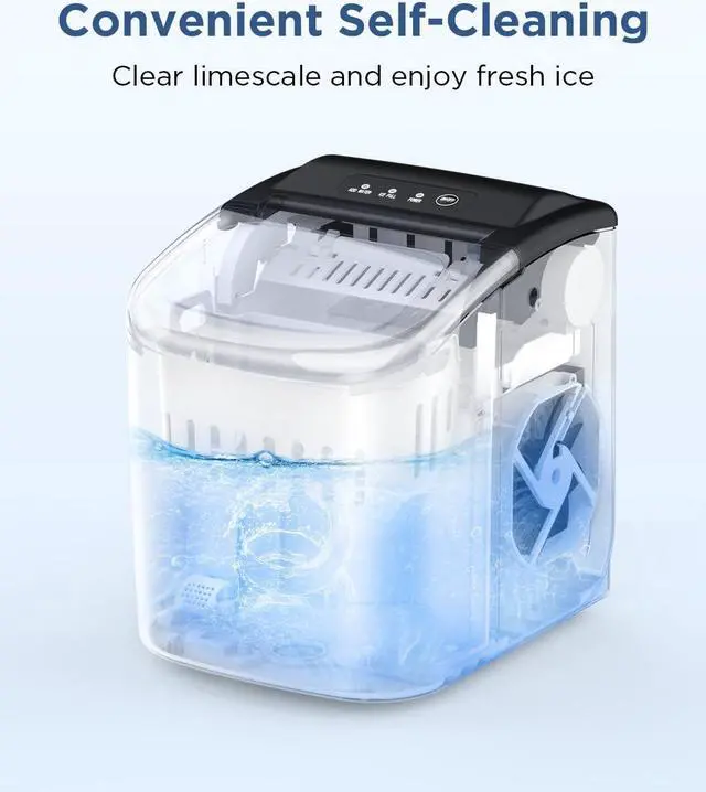 Portable and Space-Saving: This ice maker has a compact design and comes with a handle, making it easy to carry. The ice maker weigh is 14.8 pounds.