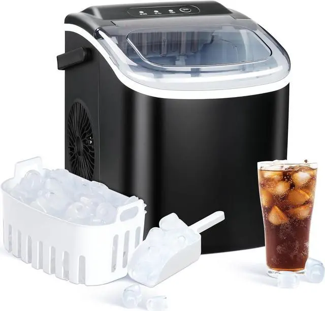 Latest upgraded version: By using advanced technology compressors, this ice maker can produce 9 ice cubes in just 6-8 minutes. It produces up to 26 pounds of ice per day, fully meeting daily demand.