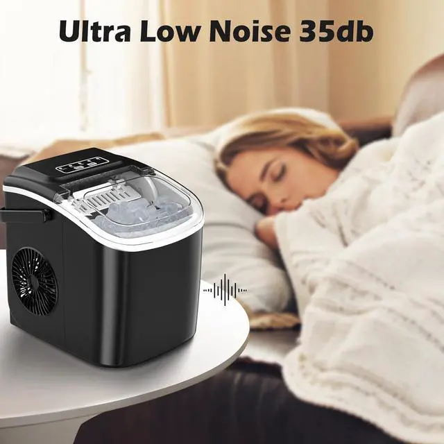 Quiet & User-Friendly Operating at less than 35db, this portable ice maker countertop provides a quiet environment for ice-making, similar to a working freezer. The transparent lid allows you to monitor the ice capacity, and the sensor automatically detects when the ice is full to prevent overflowing.