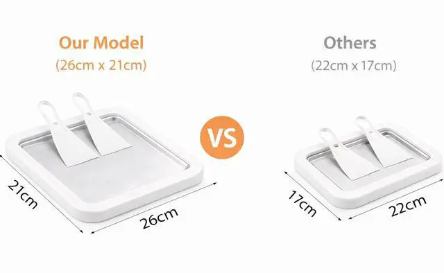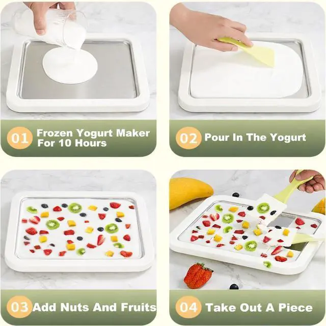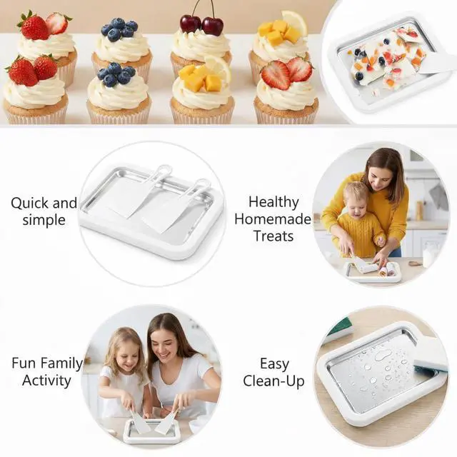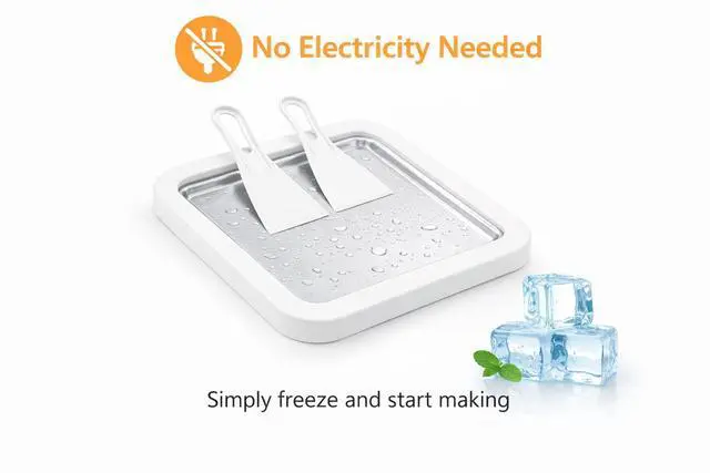 [Fast Freeze Ice Cream Maker No Electric Needed] Create fresh ice cream, frozen yogurt, sorbet, slushy, popsicle treats and ice cream rolls in minutes. Just freeze the plate, pour, roll, and enjoy electric free at home rolled ice cream kit for quick desserts.