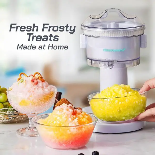 FUN & REFRESHING Elite Gourmets New Snow Cone & Shaved Ice Maker shaves ice perfectly for summertime fun. Ideal for backyard barbeques, parties & more.