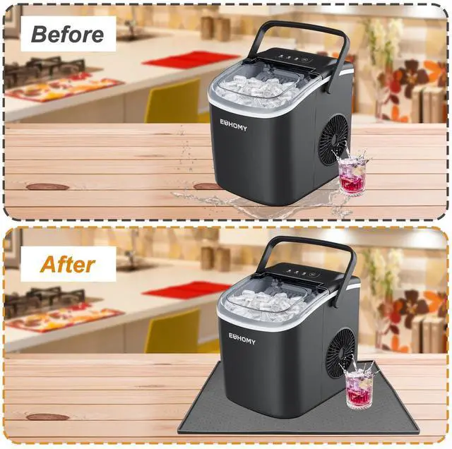 Keep Countertop Ice Maker Stable: Our silicone mat tray has high density non-slip particles with raised dots on the top, which prevents the ice machine from sliding due to external force and ensures that the ice machine is fixed in place, very user-friendly design.