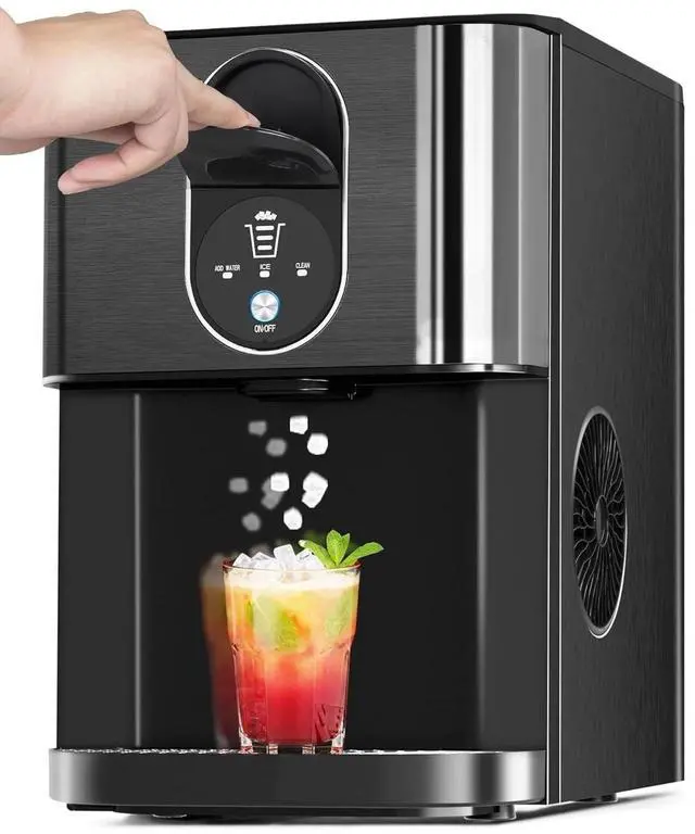 Rapid Efficient Ice MakingOur countertop ice maker with 2.4L rear water reservoir can make up to 44 lbs of chewable nugget ice daily. The perfect solution for your chewable ice-making needs. So youre never out of ice for parties, cocktails, or any occasion. Designed with an upgraded compressor and insulation, soft ice cubes inside the ice maker melt more slowly and the ice cubes are easier to store.