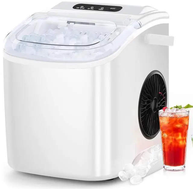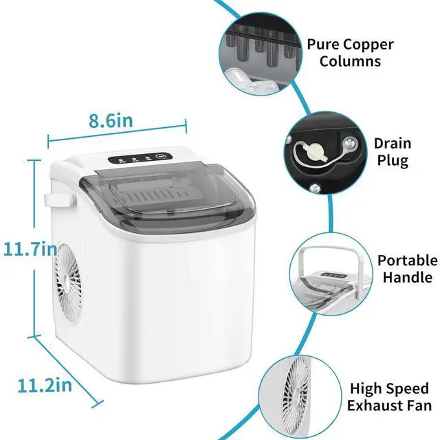 Portable and Space-Saving: This ice maker has a compact design and comes with a handle, making it easy to carry. The ice maker weight is 14.56 pounds.