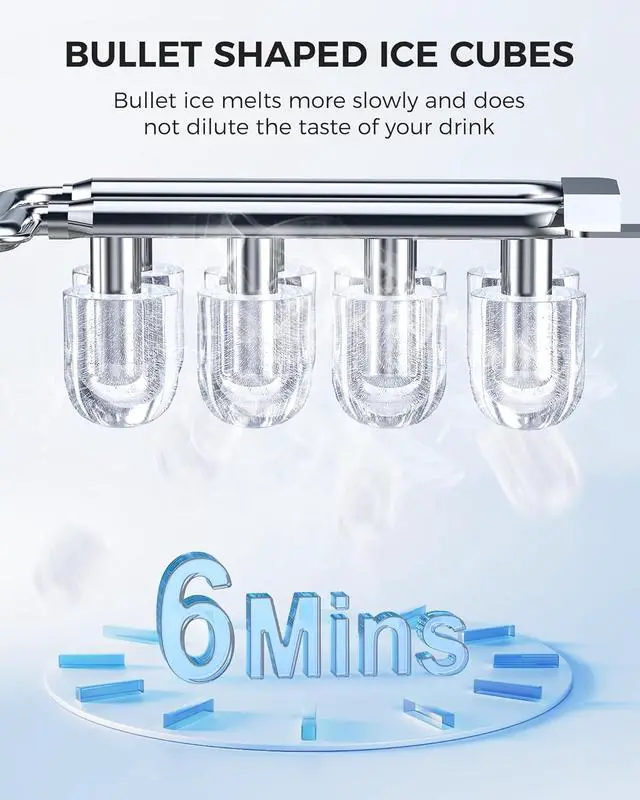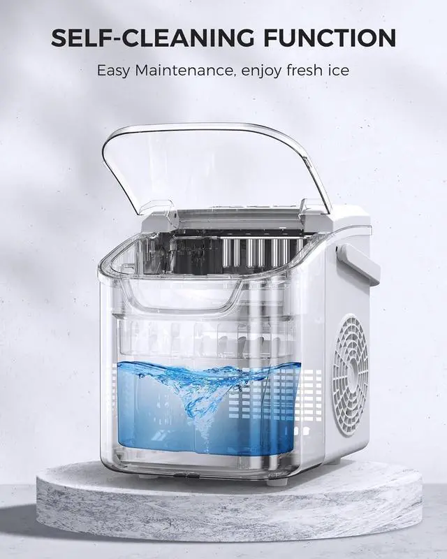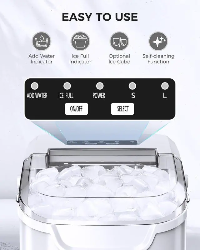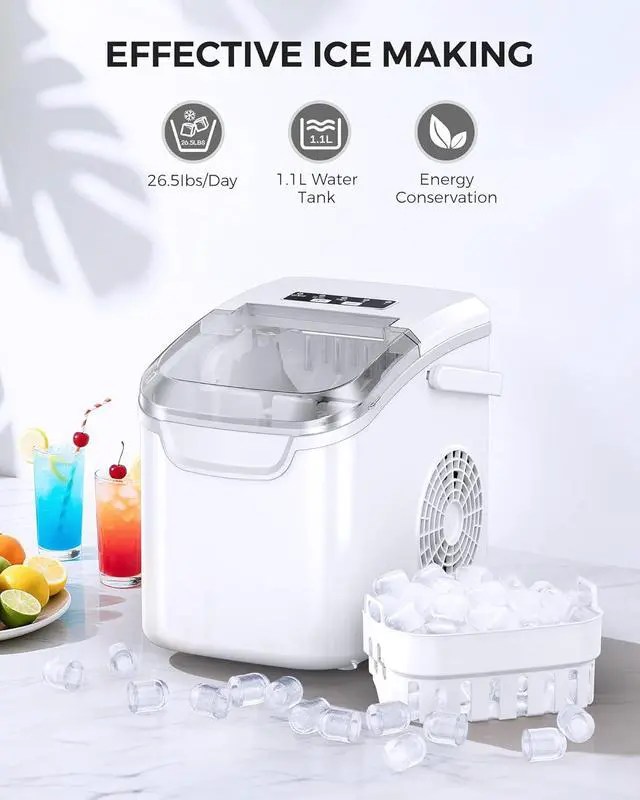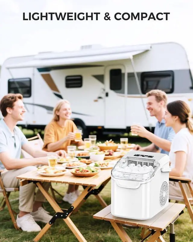 Portable and Space-Saving: This ice maker has a compact design and comes with a handle, making it easy to carry. The ice maker weight is 14.56 pounds.