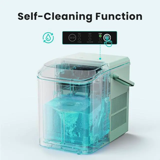 Ice Maker Machine with Handle,26lbs in 24Hrs,9 Ice Cubes in 6 Mins,Auto-Cleaning Portable Ice Maker with Basket and Scoop, Countertop Ice Maker for Home/Kitchen/Camping/RV Sleek Green