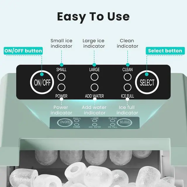 User-Friendly Operation: The clear ice cube maker control panel is designed for effortless usejust follow three simple steps to enjoy fresh ice cubes in no time. Intuitive indicators light up to signal when the water tank needs refilling or the ice bin is full. During operation, the portable ice maker operates at a noise level below 40 decibels.