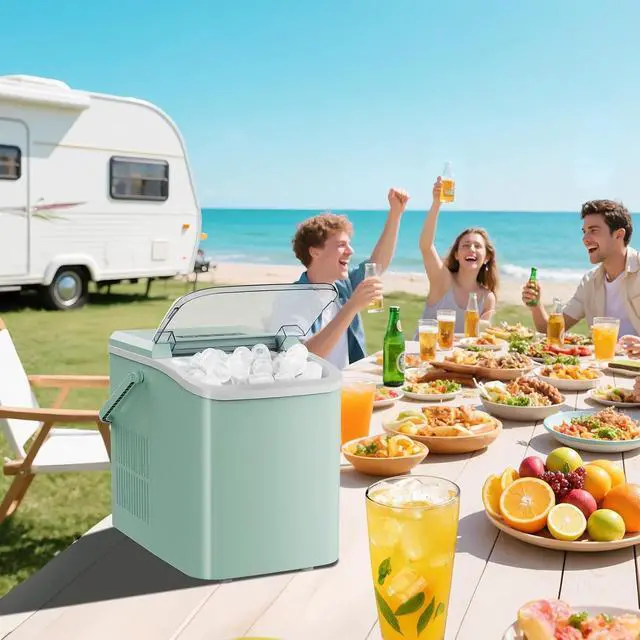 Compact and Portable:The ice maker countertop comes with a sturdy handle. It measures 8.8 * 12.5 * 11.6 inches and weighs only 17.6 pounds. Ice maker doesn't take up much space and is easy to carry, making it highly suitable for various occasions such as the kitchen, home, camping, RVs, parties, bars, dormitories, etc.