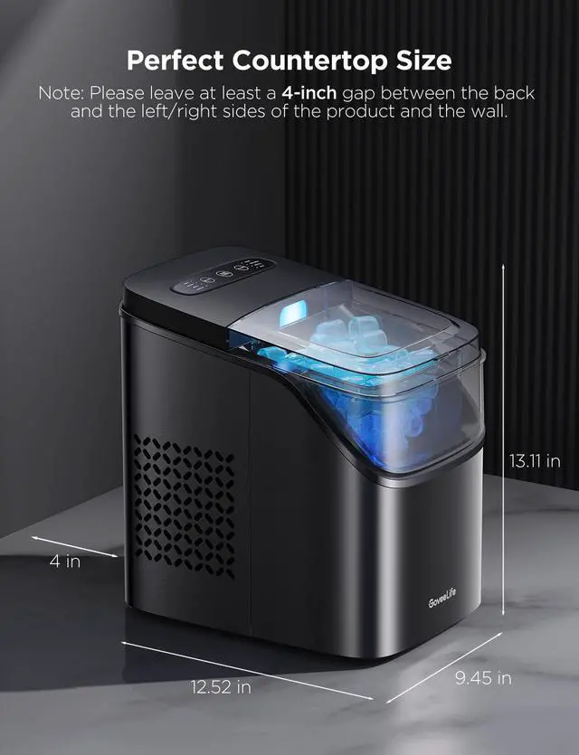 This ice maker is ETL certified, ensuring it meets rigorous safety standards. For the product's ideal performance, please leave at least a 4-inch gap between the back and the left/right sides of the product and the wall. This will help ensure proper airflow and the device's longevity.