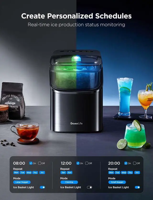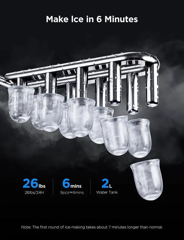 Easy Scheduling: Arrange for ice to be made in advance with the app's timer feature. Simply set an automated daily or weekly ice-making schedule, and enjoy fresh ice whenever you need it. Please note that this ice maker has no cooling function. Enjoy your ice in a timely manner or place it in a freezer for extended use. Due to the continuous soaking in water during the production process of bullet ice and the need for heating to remove ice, the surface of bullet ice will appear slightly damp.