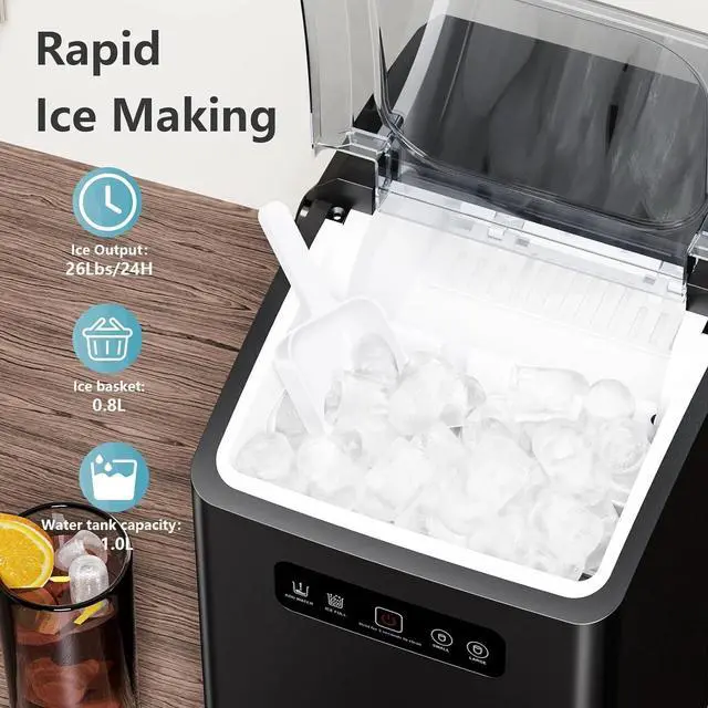 Effortless Care, Uninterrupted FreshnessBid farewell to laborious cleaning tasks. A mere 5-second press of the ON/OFF button activates the pebble ice maker machine's self-cleaning feature. In just 15 minutes, a brand-new ice maker emerges, ready to serve you with fresh ice.
