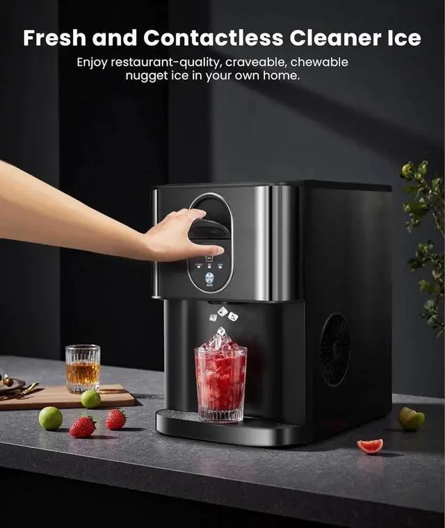 Refreshing Chewable Nugget IceSay goodbye to hard, unchewable ice blocks. Enjoy soft, crunchy, tooth-friendly ice thats slow-melting and ideal for beverages. Keeps drinks cool without watering them down, enhancing flavor retention, perfect for any beverage from whisky to soda. In addition, this ice maker is also equipped with ice quantity indicator, which can display the remaining ice quantity in the ice storage basket at any time.