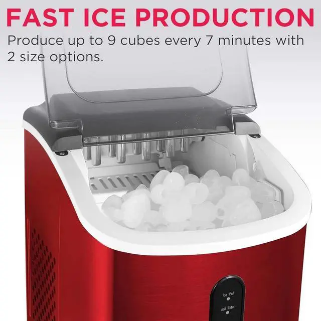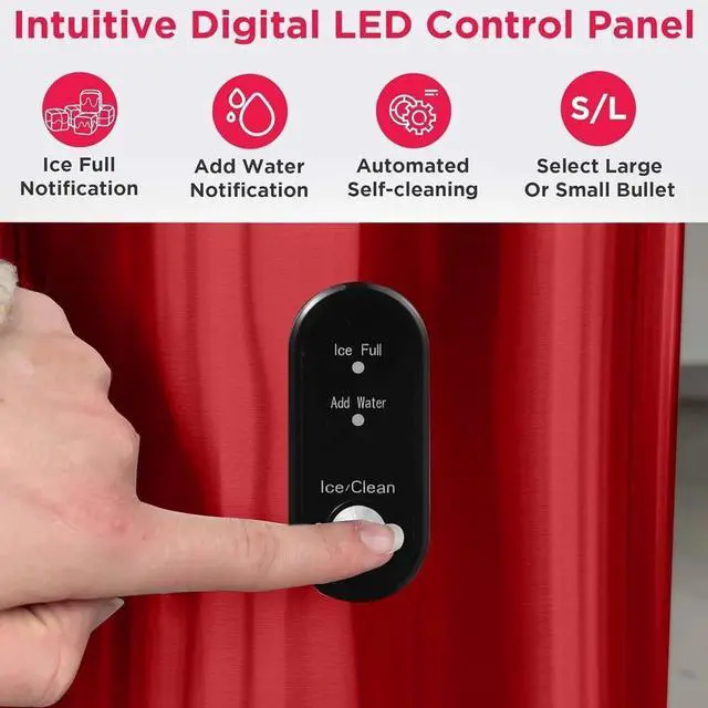 FUNCTIONALITY - The user-friendly digital control panel lets you know when the bin is full and when the water is empty. Once ready, the light flashes and the ice falls into the provided ice bucket, ready to be served.