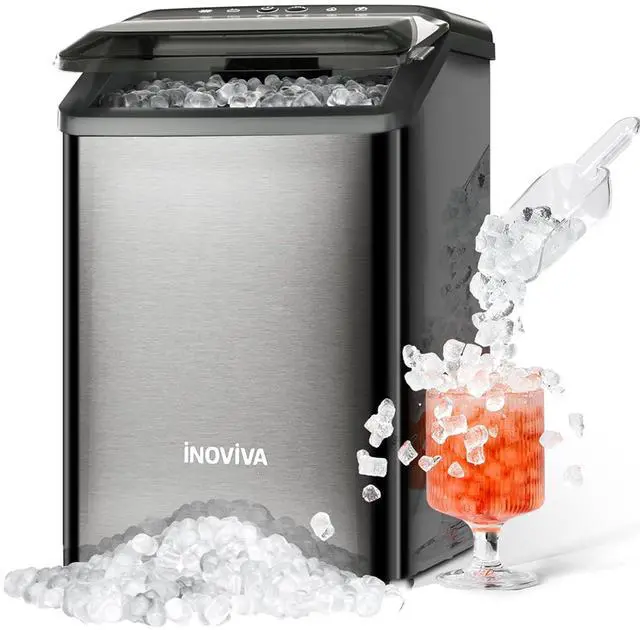 **High Ice Output & Quick Production**: The INOVIVA countertop ice maker can make up to 40 lbs of chewable nugget ice daily. The first batch is ready in just 10 minutes, so youre never out of ice for parties, cocktails, or any occasion.