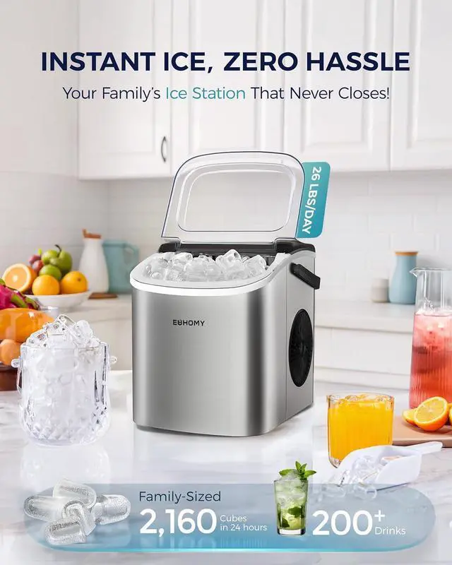 Superior Quality & Warranty Promise: Include handle, ice basket, ice scoop, manual and well-designed package can as gifts. Our Mission is committed to providing customers with premium Euhomy ice maker at a reasonable price. You totally deserve a more exquisite life! We offer 12-month warranty from the original purchase date; Lifetime technical service support. Suppose you have any questions about using our Ice Maker, Our 7*24-hour customer support is always ready to help you!