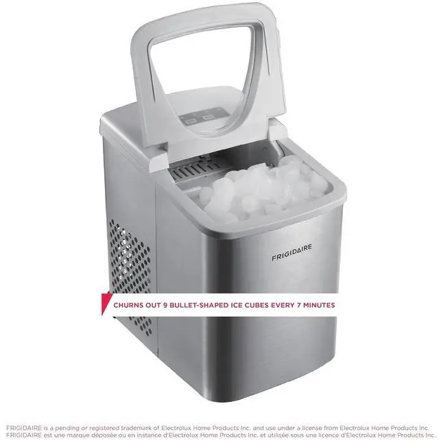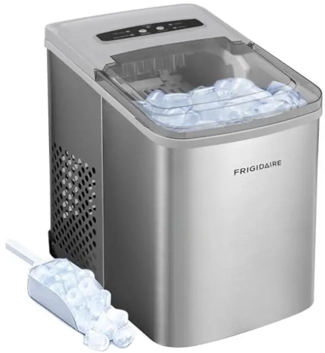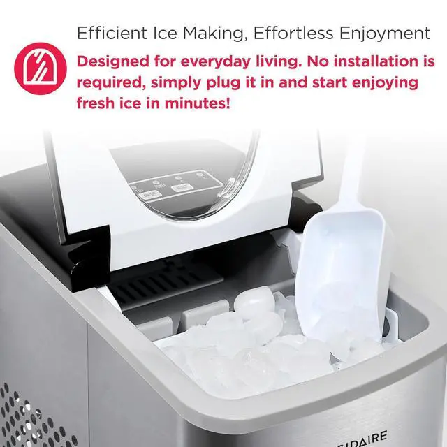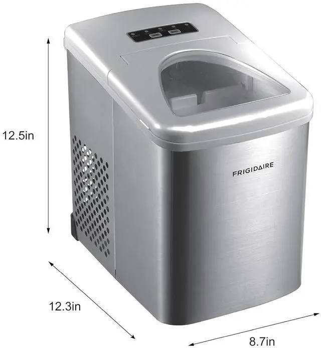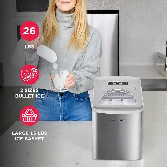 Sleek Design - Never run out of ice again with the Frigidaire Ice Maker that produces up to 26 lbs. of ice per day. Elevate your space with its sleek stainless steel countertop design that blends seamlessly with any kitchen, bar, office, or dorm.