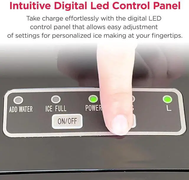 Intuitive Control - The ice maker features a transparent window so you can easily monitor ice levels and see when ice is being made. Take full control with the digital LED control panel, allowing easy adjustment of settings and ice size selection for ultimate convenience.