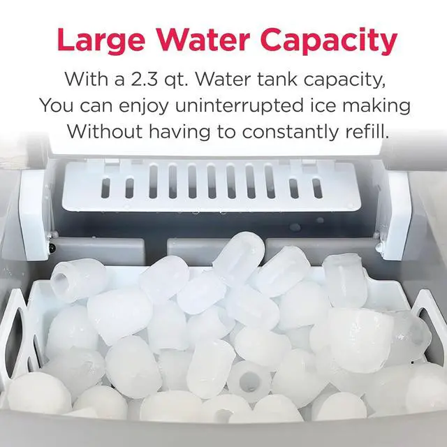 Bonus Accessory - Enhance your ice making experience with the included ice scoop for easy retrieval of ice cubes. The interior basket holds up to 1.5 lbs. of ice at a time, so youll always have ice on hand.
