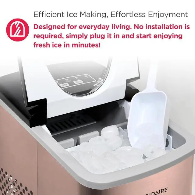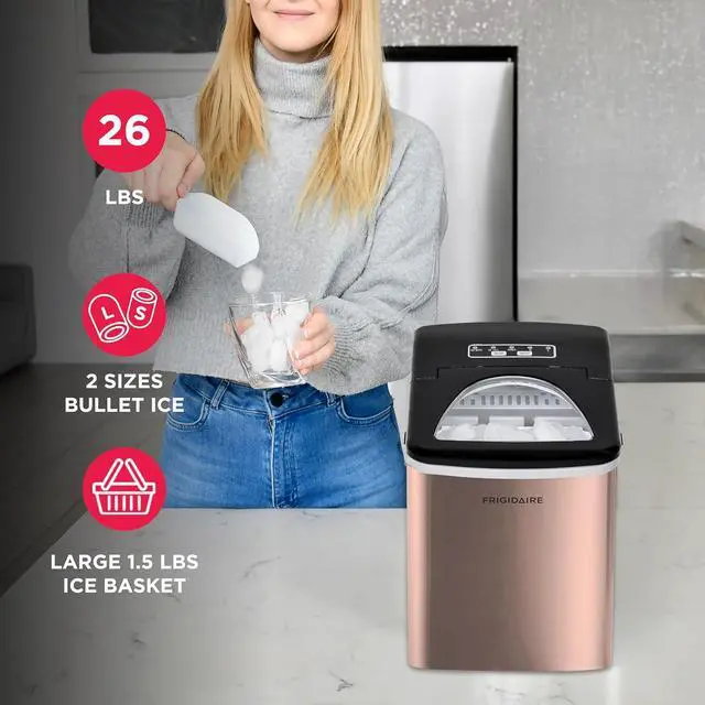 Sleek Design - Never run out of ice again with the Frigidaire Ice Maker that produces up to 26 lbs. of ice per day. Elevate your space with its sleek stainless steel countertop design that blends seamlessly with any kitchen, bar, office, or dorm.