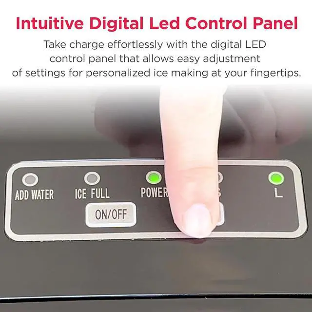 Intuitive Control - The ice maker features a transparent window so you can easily monitor ice levels and see when ice is being made. Take full control with the digital LED control panel, allowing easy adjustment of settings and ice size selection for ultimate convenience.