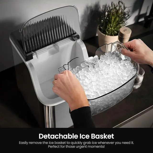 Effortless Care, Uninterrupted FreshnessBid farewell to laborious cleaning tasks. A mere 5-second press of the ON/OFF button activates the pebble ice maker machine's self-cleaning feature. In just 15 minutes, a brand-new ice maker emerges, ready to serve you with fresh ice.