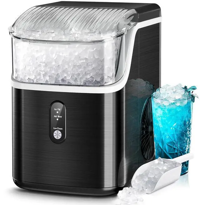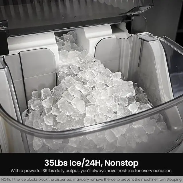 Rapid Ice ProductionNew Nugget ice maker machine is remarkably efficient! With its 1.1L water tank, it produces 35 pounds of ice within 24 hours. Our countertop ice maker machine churns out the first batch in just 7 minutes,ensuring continuous and rapid ice-making. No more trips to the store for ice!