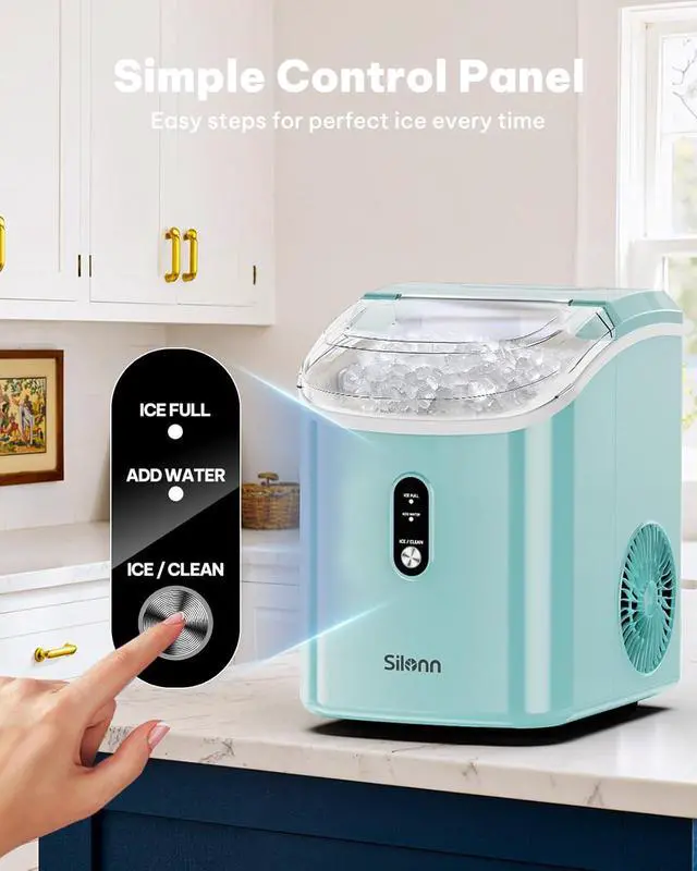 QUIET ICE-MAKING - The nugget ice maker is designed with a quiet cooling process, making it one of the quietest nugget ice makers on the market. Enjoy silent, smooth operation that doesnt disturb your home or office space. An indicator light illuminates when water is low or the ice basket is full.
