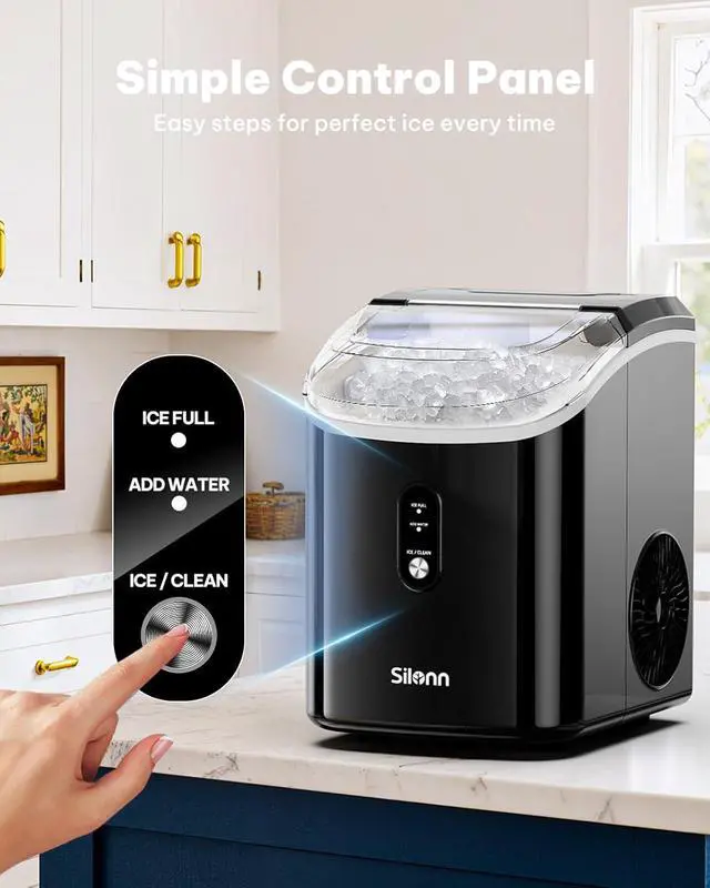 QUIET ICE-MAKING - The nugget ice maker is designed with a quiet cooling process, making it one of the quietest nugget ice makers on the market. Enjoy silent, smooth operation that doesnt disturb your home or office space. An indicator light illuminates when water is low or the ice basket is full.