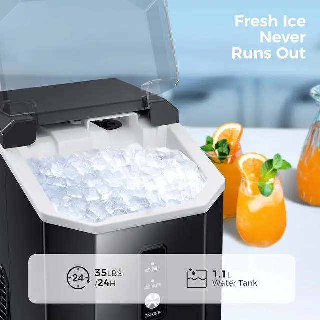 Nugget Ice at Your FingertipsSay goodbye to messy ice cube trays and hello to soft, crunchy and chewable nugget ice. It is perfect for a wide range of applications, including cocktails, smoothies, and iced drinks. Whether you are entertaining guests or just relaxing at home, our nugget ice maker is the perfect way to keep your drinks cool and refreshing