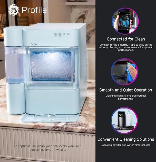 CONVENIENT CLEANING SOLUTIONS: Water filter (P4INKFILTR) and citric acid descaling powder (P4DNK6CLEAN) sold separately. The Opal water filter and citric acid descaling powder is designed for the GE Profile Opal Nugget Ice Maker to provide fresh-tasting ice every time.