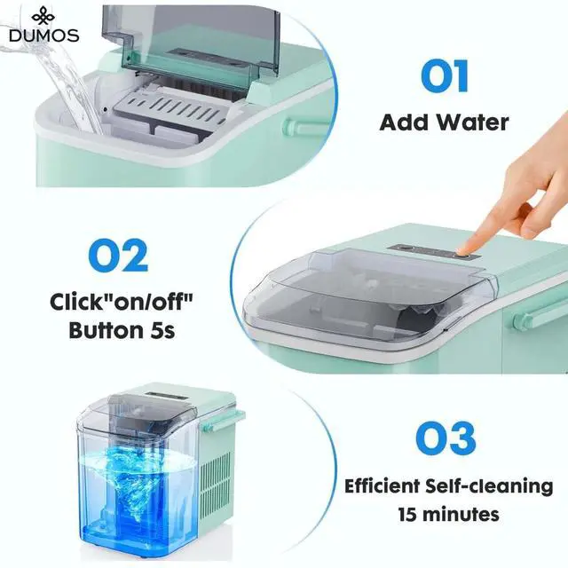 SELF-CLEANING FUNCTIONThe countertop ice machine has a self-cleaning function that can be activated by pressing the on/off button for 5 seconds. This will ensure that you can enjoy clean and healthy ice in addition to allowing you to clean it quickly and easily. This ice cube maker comes with an ice scoop and a removable ice basket in the package.