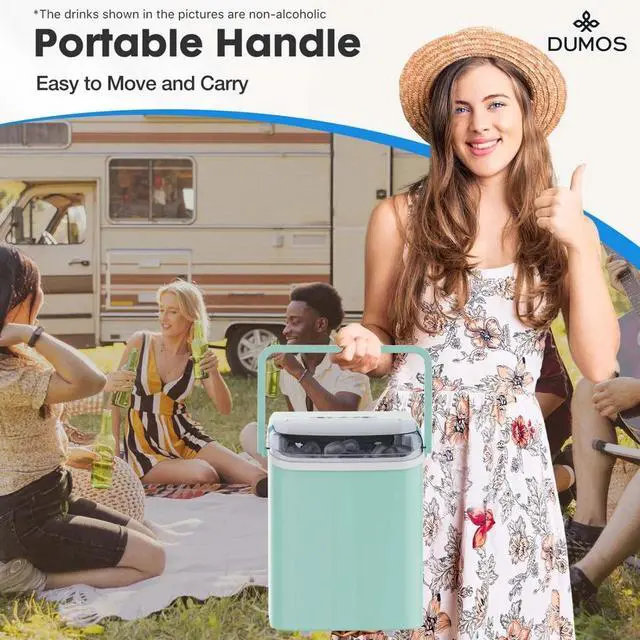PORTABLE ICE MAKERThis counter top ice machine maker weighs 15.4 pounds and is designed with a convenient carry handle. The small ice maker measures 8.8*11.6*12.5 inches. You can place the mini portable ice maker countertop anywhere, perfect for the kitchen, office, bar, camping, RV, or parties.