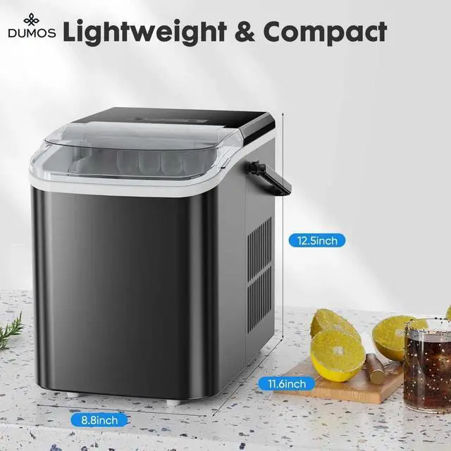 SMART & SIMPLE OPERATIONThe control panel is very easy to operate. Enjoy fresh ice with 3 easy steps! When the water is insufficient or the ice basket is full, the indicator light will turn on. When making ice cubes, the noise is lower than 40dB, similar to a working refrigerator.