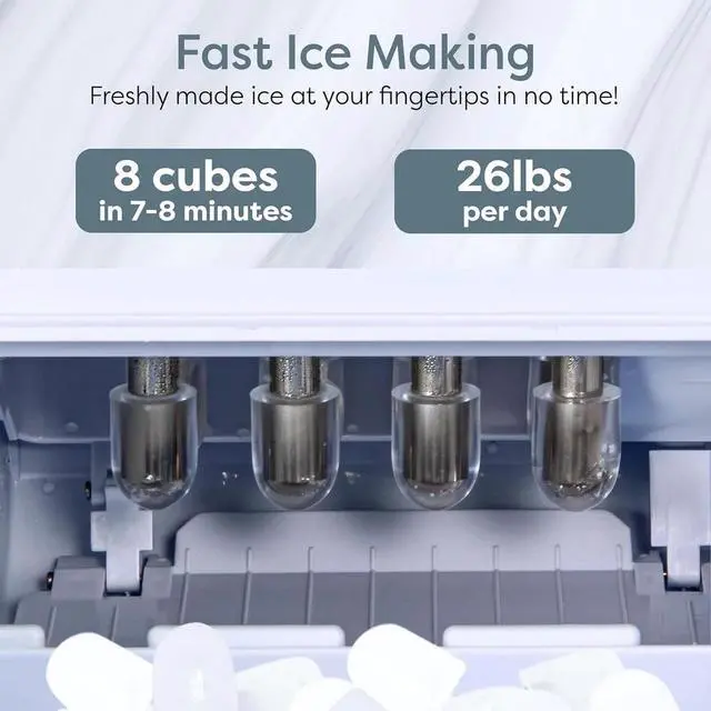 • FAST ICE-MAKING: Enjoy 8 cylinder-shaped ice cubes in just 7-8 minutes per batch, perfect for quick refreshment.