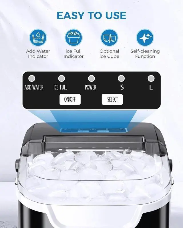 Portable and Space-Saving: This ice maker has a compact design and comes with a handle, making it easy to carry. The ice maker weight is 11.75 pounds.