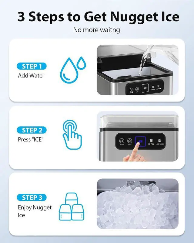 Chewable Nugget Ice: Chewing ice is not just ice; it's a treat for your taste buds. With specially designed ice-making technology, Aeitto Nugget Ice Maker not only preserves the original flavors of your beverages but also creates elastic, chewable ice that enhances your enjoyment. Whether paired with juice, soda, or cocktails, it delivers an unforgettable taste sensation.