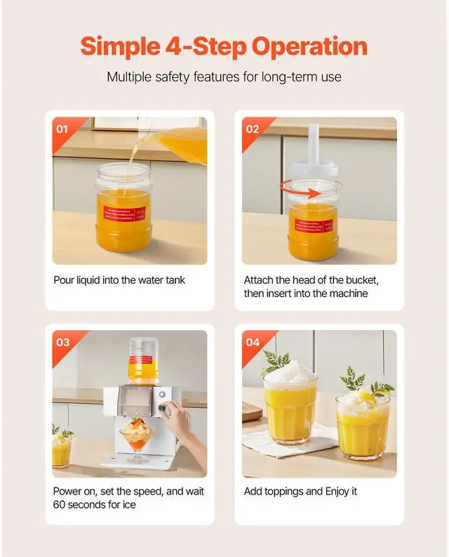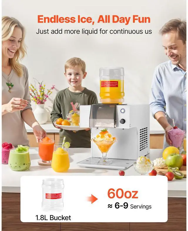 Operate: This snow ice maker uses a simple knob to adjust speed, allowing you to easily control the texture of your ice. Its intuitive design makes it simple to operate