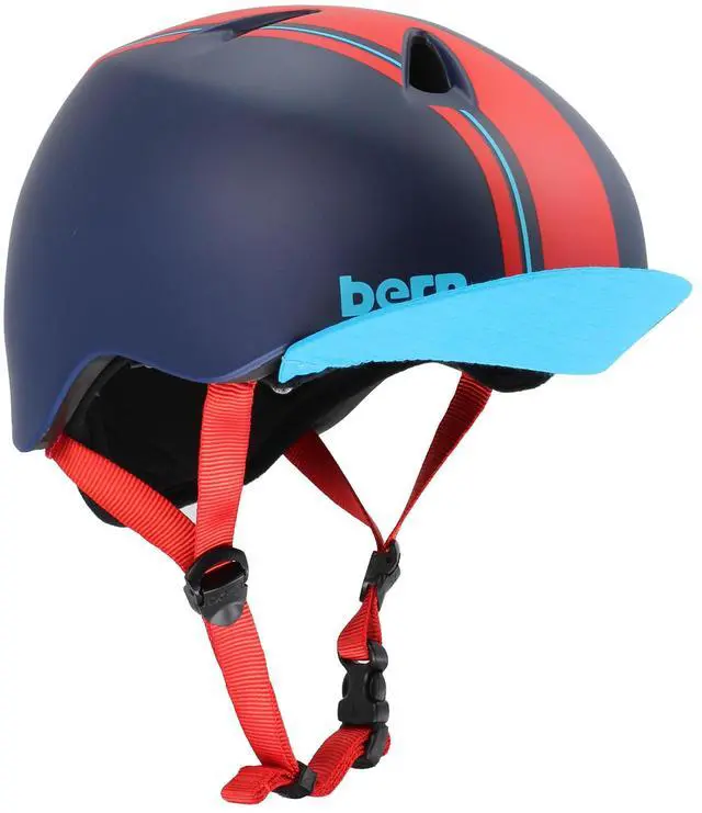 Bern Nino Bike Helmet for Kids, Ages 3-12, Flip Visor, Adjustable fit, Lightweight, Blue & Red, Size XS/S