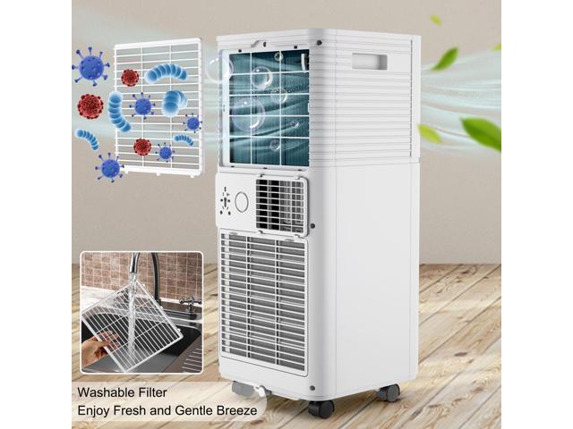 - Powerful Cooling Capacity: Equipped with 10000 BTU cooling power and a washable dust filter screen, this portable air conditioner can cool down an area of 350 square feet . And the air flow is rated at 330 m³/h.